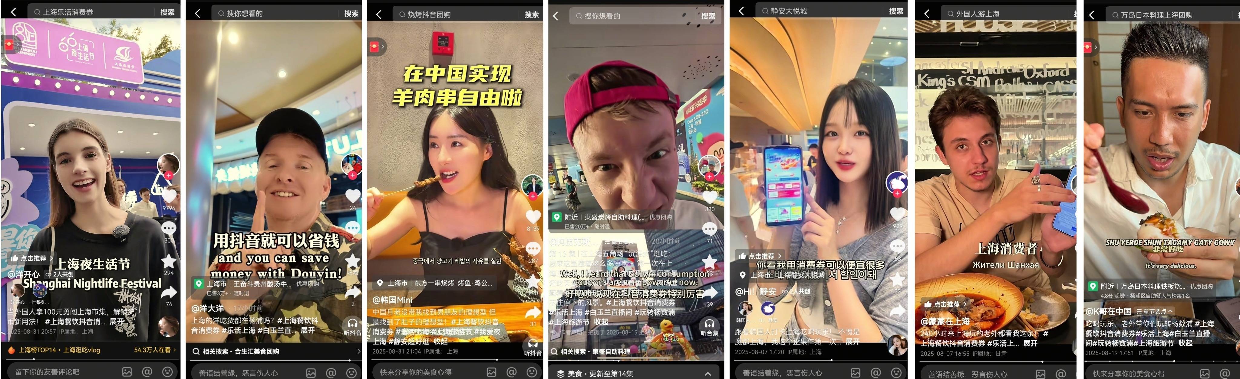 为方便国际游客在沪消费,抖音生活服务特别请来白俄罗斯、韩国、美国、土库曼斯坦、法国等多个国家的平台达人发布双语探店视频,手把手向国际在沪游客分享游玩攻略。